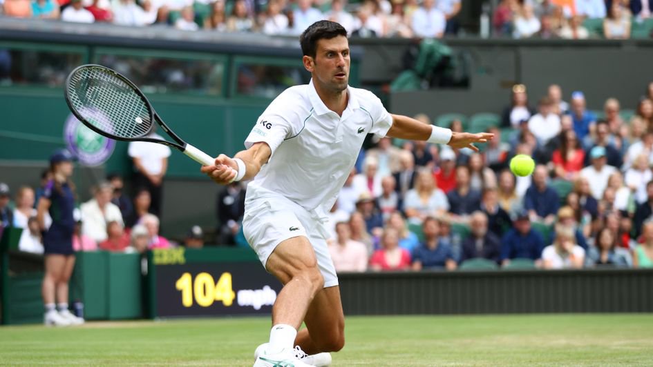 Serbia's novak djokovic beat italy's matteo berrettini in four sets sunday at wimbledon to take the men's singles final, setting himself up for a potential grand slam if he triumphs at the us open.